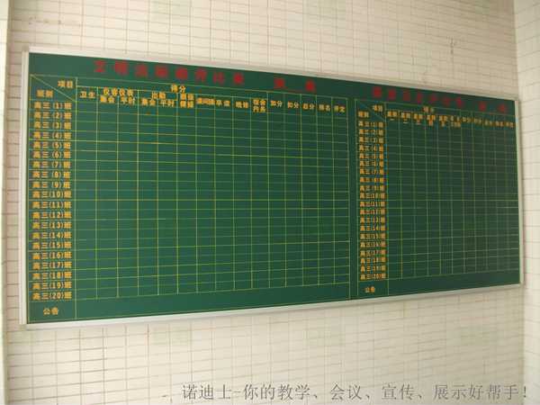 诺迪士厂家订做丝印班级评比板宿舍评比板课间操记录板车间生产进度板