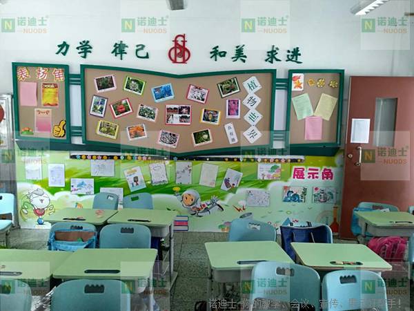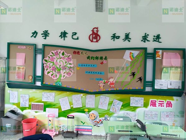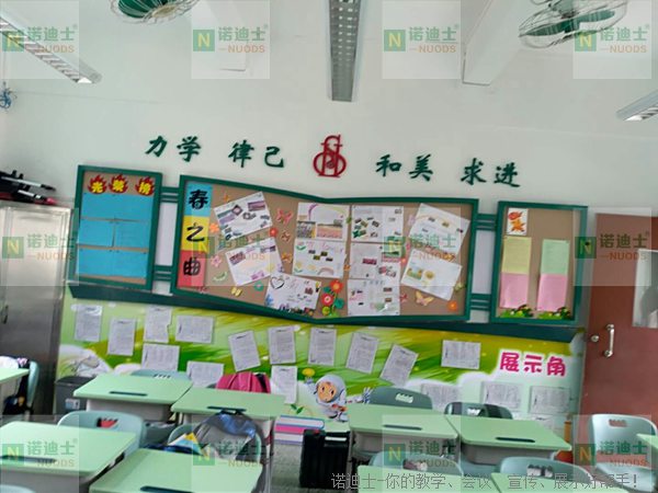 诺迪士NUODS学校文化墙板案例展示:海珠某实验小学订做的课室后墙文化墙板 烤漆金属外框,形状别致,设计独特,款下新颖,见下图:
