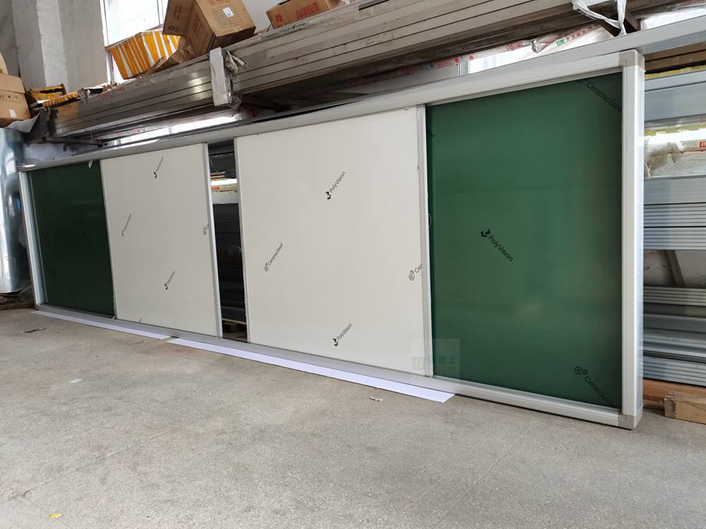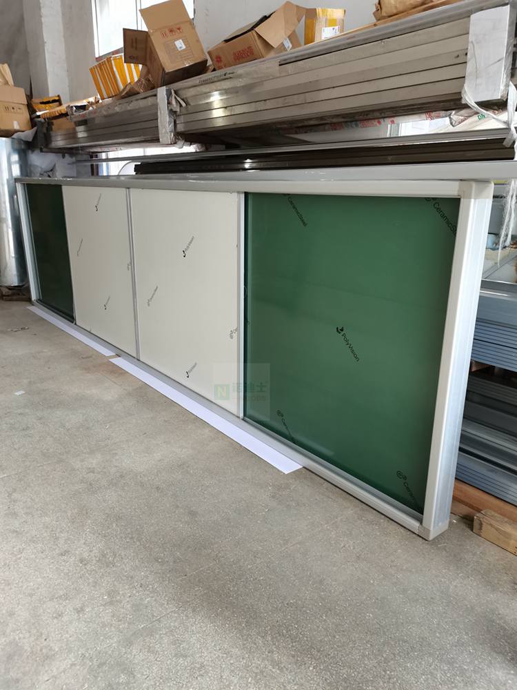 订做香港推拉移动搪瓷白板多媒体绿板银白边推拉板四合一白板绿板组合板